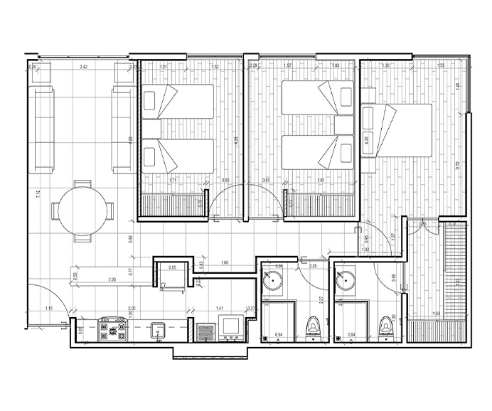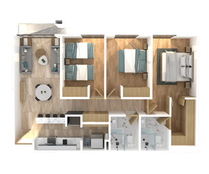 • 3 camas